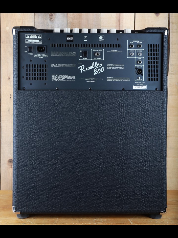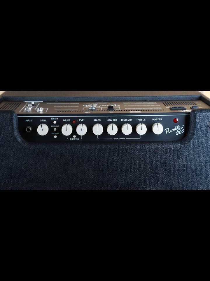 On sight alone, you might not believe that the stylish diminutive Rumble 200 combo actually pumps 200 watts of pure bass muscle and finesse, but it does exactly that. Lighter and louder than ever, it's built with great features including classic Fender styling, 15" Eminence® speaker and compression horn, overdrive circuit, versatile three-button voicing and more.”-from the Fender website