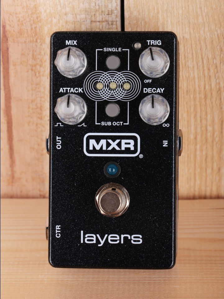 “The MXR Layers Pedal will confer its expertly created sustain and natural decay to up to three layers, each with its own mini LED to tell you its active. First, decide if you want to run just a single layer or up to three—engaging the Single switch keeps it to one. Layers can be triggered both with the footswitch and through your playing dynamics. With the footswitch, you just play a note or chord and hold the switch down—releasing the switch will allow the layer to fade according to your Decay knob setting. This is perfect for composing complex solos over droning accompaniments. Alternatively, you can trigger layers automatically in response to your attack, as set by the Trig knob. Combine these two methods for more creatively complex sound stacking: with Single mode disengaged, you can hold a layer with the footswitch and then auto-trigger more layers over top. The MXR Layers Pedal offers a straightforward set of controls to tailor your layers to taste. The Mix knob adjusts the wet signal level; in other words, the volume of your layers. As previously stated, the Trig knob sets the sensitivity of the pedal’s auto-trigger function, allowing you to generate new layers according to the intensity of your pick strokes. The Attack knob adjusts the fade-in time of each layer, while the aforementioned Decay knob sets the fade-out time, which mimics the natural vibrations of a physical string by decaying the high frequencies first. For a fat subterranean vibe, engage the Sub Oct switch to take one or more of your layers down an octave. Delving beyond the core features, the MXR Layers Pedal offers the experimentally inclined even more intricate opportunities to customize not only the sound of your layers but the overall playing experience. Through the pedal’s programming functions, you can adjust additional parameters, including modulation intensity, delay time, diffusion, and more. You can also use your keyboard’s sustain pedal or another off-board switch such as the MXR split+tap to trigger your layers, blend setting configurations with the Volume(X) 8 Pedal , and run Stereo Input, Stereo Output, and Dry/Wet Split modes. With its pristine, high-fidelity sustain, the MXR Layers Pedal begs to be the new mainstay of just about any signal chain. Its deep feature set invites you to venture beyond your creative frontiers, where you can build richly detailed soundscapes that elevate musical expression to new heights.” From the JimDunlop Website .