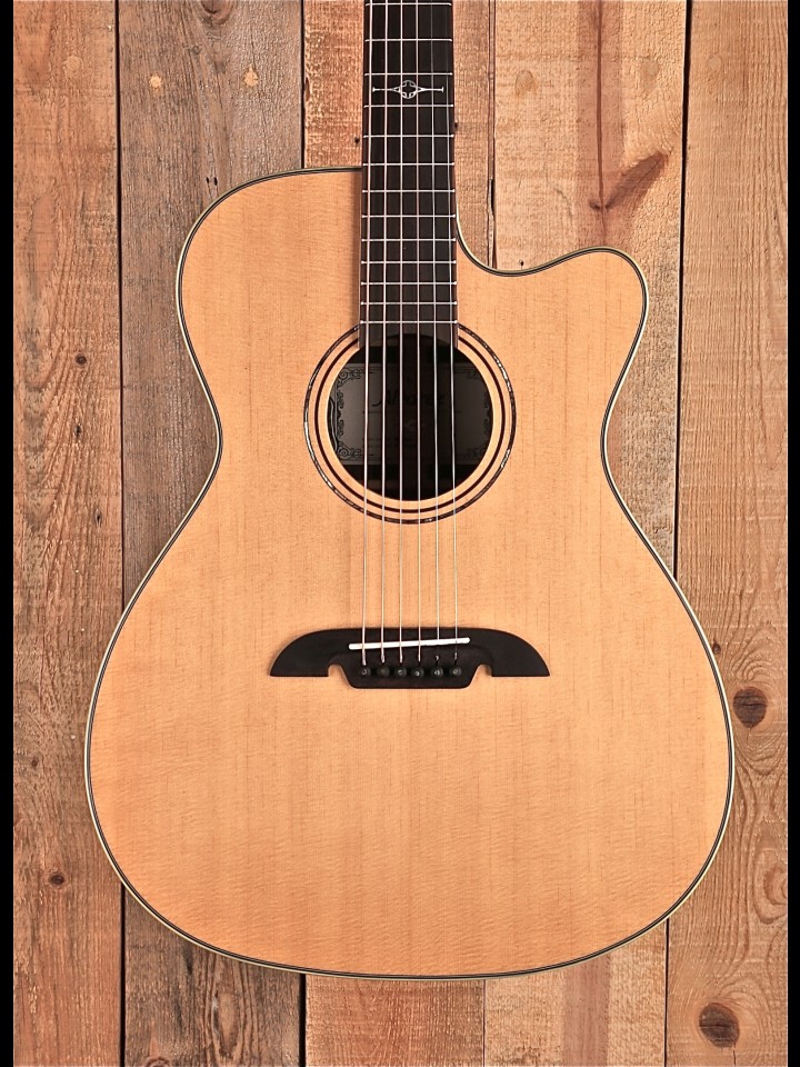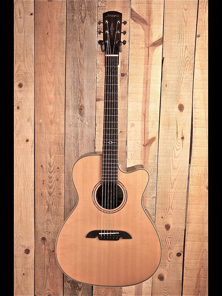 This cutaway model allows for easy access up the neck and is fitted with the LR Baggs HiFi system. HiFi pairs dual bridge plate sensors with high-fidelity electronics, providing exceptional balance, definition, dynamics, and good feedback resistance. The lightweight pickups preserve the integrity of your instrument’s bridge plate without negatively altering your acoustic tone. HiFi’s built-in, studio-quality preamp is voiced to complement the pickups for an optimal plug-and-play experience.” – From the Alvarez website