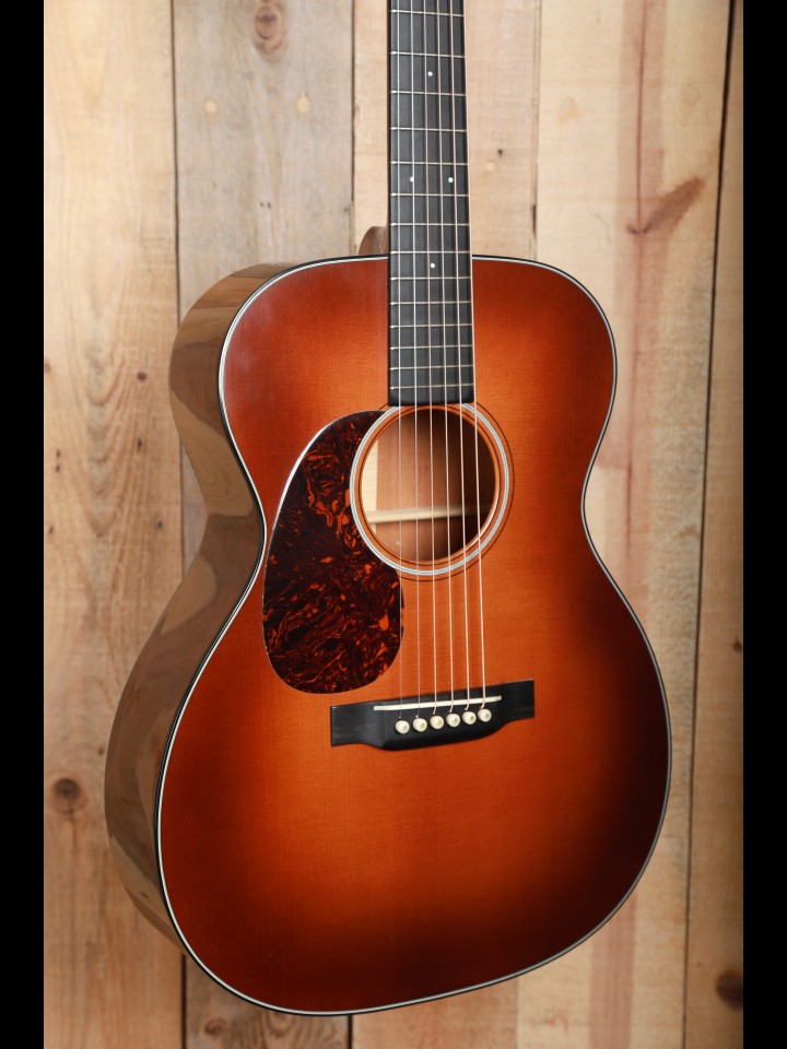 Interestingly, at the time, the term OM, or “Orchestra Model,” simply referred to the 14-frets clear of the body design. Subsequently, there were OM versions of dreadnoughts and other body sizes. However, eventually the OM designation became its own thing, denoting a 14-fret 000 body with a long 25.4” scale and a wider 1 ¾” nut width—by contrast most standard 000s of the modern and post-modern era typically have a 24.9” scale length and a 1 11/16” nut width.
