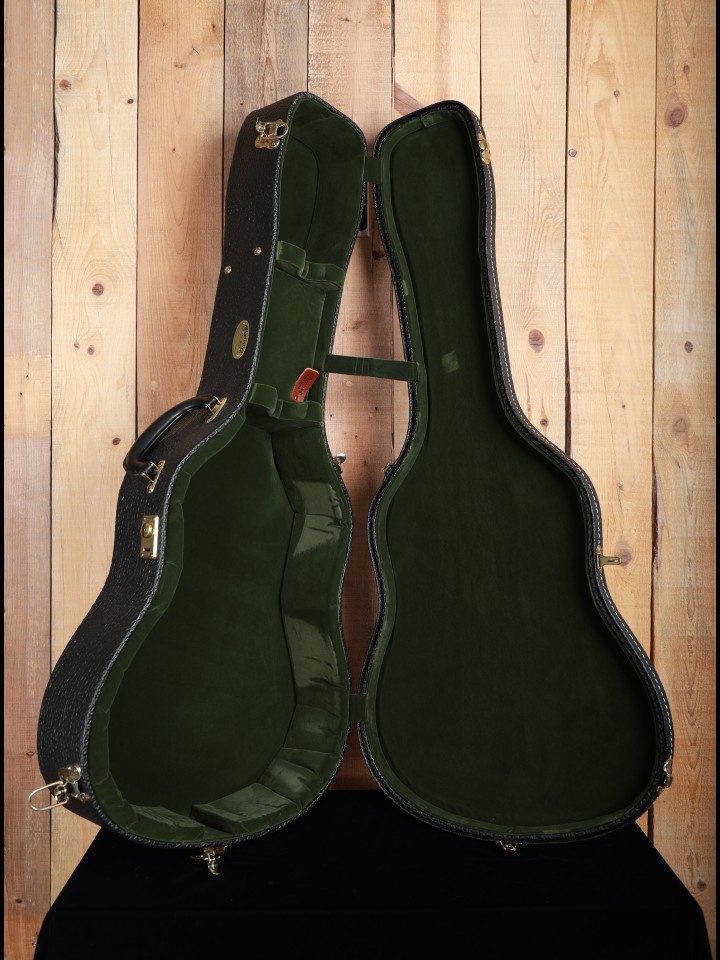This guitar was very well kept by its previous owner. While it purportedly never left the house, it was actively used, and as such shows only minor examples of typical playwear, most notable light scuffing to the pickguard. As an added bonus the bridge pins and endpin have been upgraded with Bob Colosi fossilized ivory/bone. We would consider this guitar to be in EXCEPTIONALLY FINE condition.