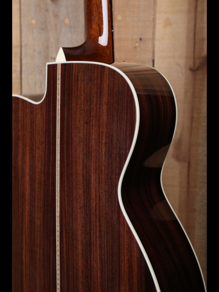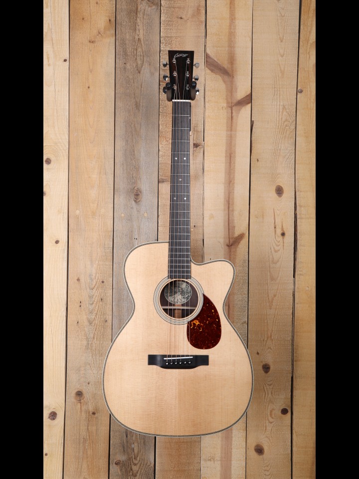 “OM’ stands for “Orchestra Model,” but 80 years after this body shape was first designed it has become the most popular 14-fret model with fingerstyle guitar soloists who choose to play on steel strings. Yet flatpickers also find it appealing, and when the graceful cutaway is added these OMs are often used by lead players who routinely explore all 20 frets much as they would on an electric guitar. The compact shape makes the Collings OM equally easy to handle onstage or when sitting on the couch, and the relatively shallow body – barely over 4 inches deep – results in a balanced tone and immediate response.” – From the Collings Website