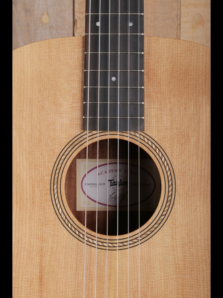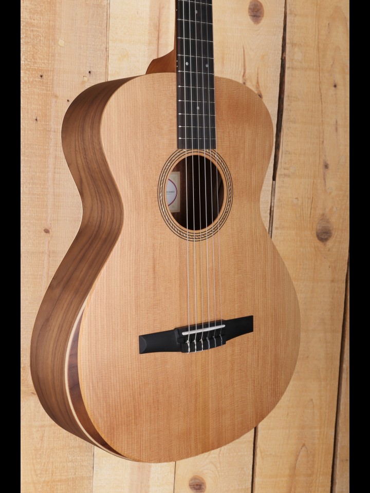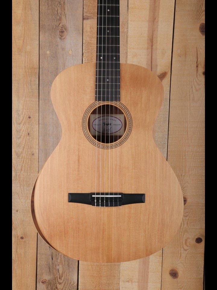"This nylon-string Grand Concert from our Academy Series may be the best nylon-string guitar you’ll find for the money. The underlying design goal of the series is to make the acoustic guitar accessible to more players by bringing Taylor’s legendary playability and tone into an affordable price range. One of the benefits of a nylon-string guitar is that the light string tension is easy on the fingertips. Another inviting feature is a built-in armrest to enhance the playing comfort. Tonally, the wood pairing of layered sapele back and sides with a solid Lutz spruce top, together with the body’s internal bracing, project a warm, mellow nylon voice with crisp percussive appeal that suits a variety of musical styles and responds well to both fingerpicking and flatpicking."