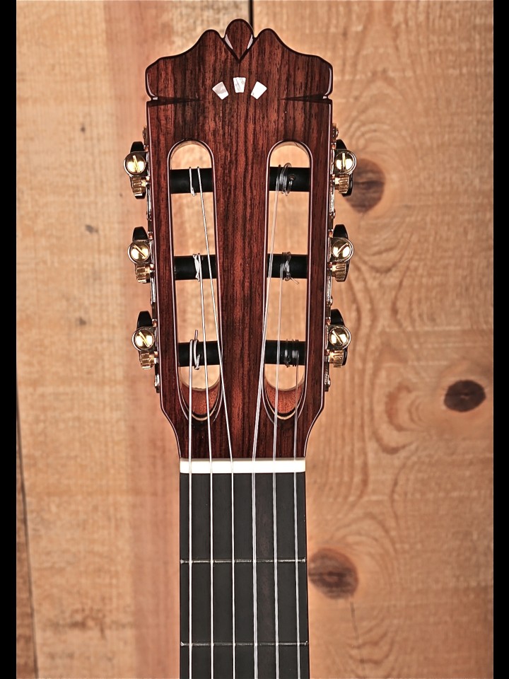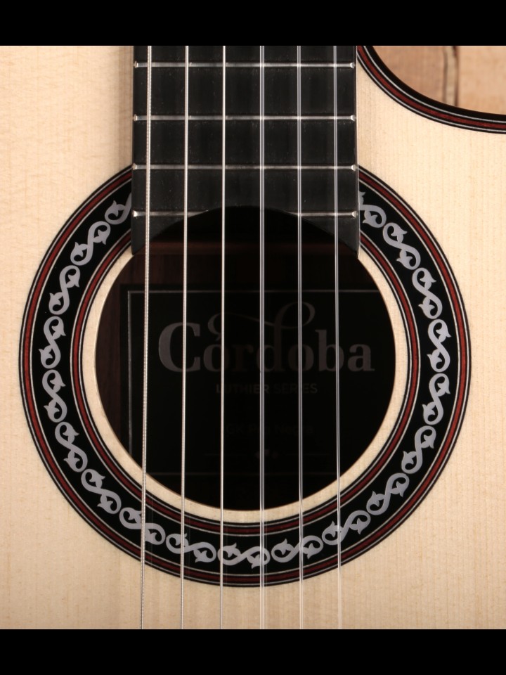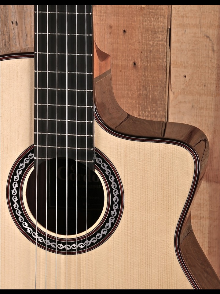 For flamenco players, this model offers a robust tone with more bass in contrast to the bright, snappy sound of 'blanca' flamenco guitars, but any guitarist looking for a new tone to add to the repertoire will feel right at home with the GK Pro Negra. Aesthetic touches like the rosewood headstock veneer complete with Cordoba’s arches icon, and the mother-of-pearl weave rosette inspired by a 1920’s Domingo Esteso guitar add a touch of elegance to this powerhouse.