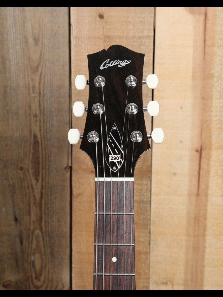 “Named for the scenic 290 highway that winds past the Collings shop through the Texas Hill Country, the 290 is a modern day tribute to the original working man’s rock’n roll guitar. A solid mahogany body and neck are complimented by two Lollar Soap Bar P90 pickups for a tone that shows off the amazing harmonic range and dynamics of this often underrated configuration.” – From the Collings Website