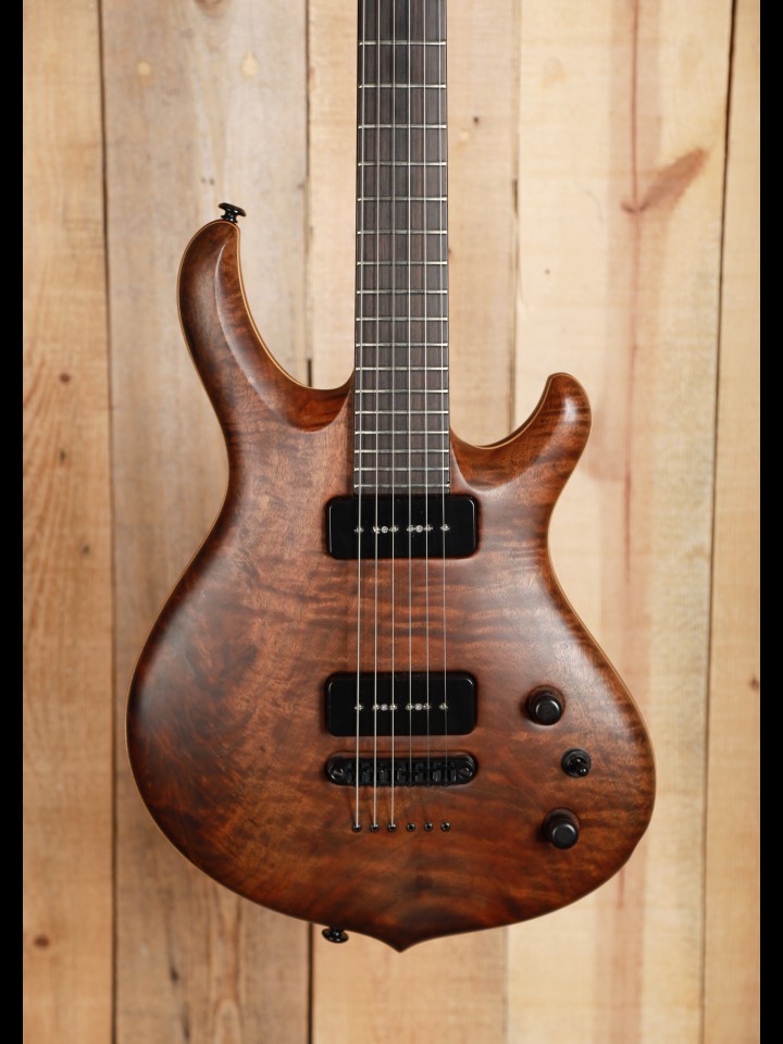 Of course, we frequently see instruments that are beautiful displays of woodworking talent that disappointingly miss the mark when it comes to their principal function as a musical tool. In the case of this iO Longhorn, we are very pleased to see that the function of this instrument is on par with the quality of build. For example, our primary concern when evaluating any guitar’s function as a musical tool is its neck. Here, we were most impressed by the fantastic fast neck feel of the iO Longhorn—without being too thin, the shape is a relatively low C, reminiscent of a modern “pointy guitar.” Likewise, the fingerboard and fretwork are consistent with what we would hope to find on any top quality build. Finally, in an amplified setting, the Jason Lollar P-90s deliver excellent sustain, body, and detail, as well as that distinctive and very appealing P-90 aggressiveness-on-demand response.
