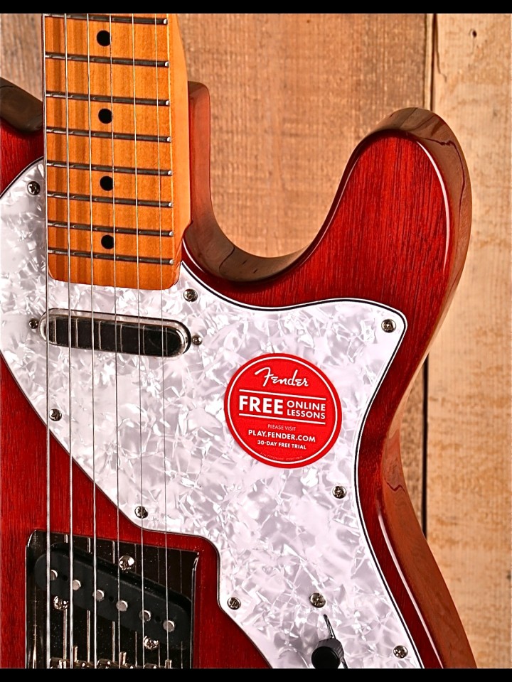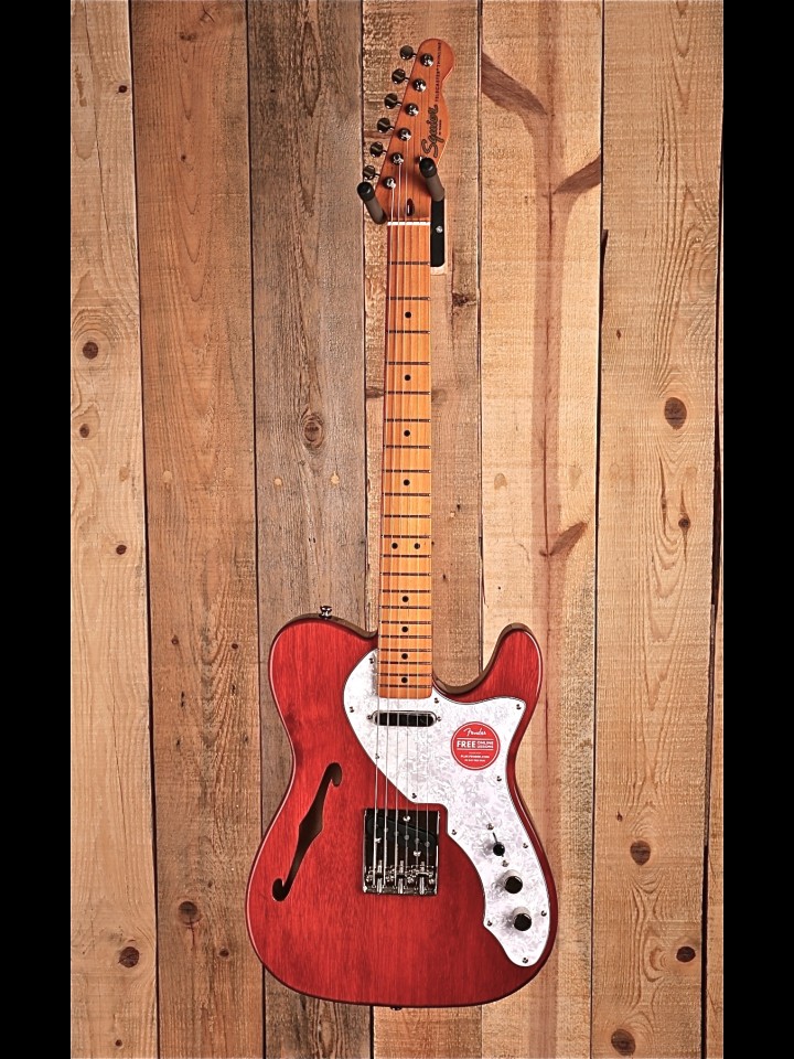 "The Classic Vibe ‘60s Telecaster Thinline is a nod to the early semi-hollow Tele models from the 1960s, creating incredible tone courtesy of the Fender-Designed alnico single-coil pickups. Player-friendly features include a slim, comfortable “C”-shaped neck profile with an easy-playing 9.5”-radius fingerboard and narrow-tall frets, as well as a vintage-style Telecaster bridge with a string-through-body design and individual steel saddles for precise adjustment. This throwback Squier model also features 1960s-inspired headstock markings, rich-looking nickel-plated hardware and a slick vintage-tint gloss neck finish for an old-school vibe." -from the Fender website