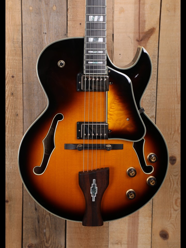 As one of the top models, the GB-10 is understandably out of the price range for many. So, in recent years Ibanez teamed up with George Benson to create a more budget-friendly version of the GB-10 in the form of the LGB30. The LGB30 is actually a slightly larger instrument, and thus not a true analogue of the GB-10 (the LGB30 is 5/8” longer, 1” wider, and ½” deeper). Yet, it certainly retains the compact feel and elegant proportions of the GB-10. In addition to the general comfort afforded, the compact design of the LGB30 makes it quite attractive and more versatile in terms of managing feedback, relative to traditional archtops. Meanwhile, the two mounted SB58 Custom Humbuckers offers the player more tonal variety, echoing that of famous models like the ES-175 Gibson. Finally, sporting its Vintage Yellow Sunburst finish, split acrylic/Abalam parallelogram inlays, inlaid rosewood tailpiece, and rosewood pickguard, the LGB30 has an enhanced aesthetic appeal relative to other instruments in its price point. In short, the LGB30 is exactly what we here at Maple Street Guitars shop for, a fantastic performance value!