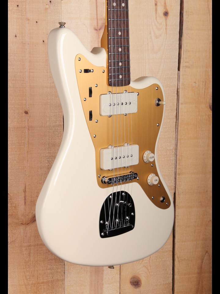 "Squier honors alt-rock godfather and Dinosaur Jr. leader J Mascis with a striking Jazzmaster guitar model that delivers as much massive sound and performance as its namesake. The pickups, hardware and finish are all specified by Mascis himself for tremendous tone and value. Only one instrument is good enough to bear his signature on his headstock - the J Mascis Jazzmaster" - From the Fender Website