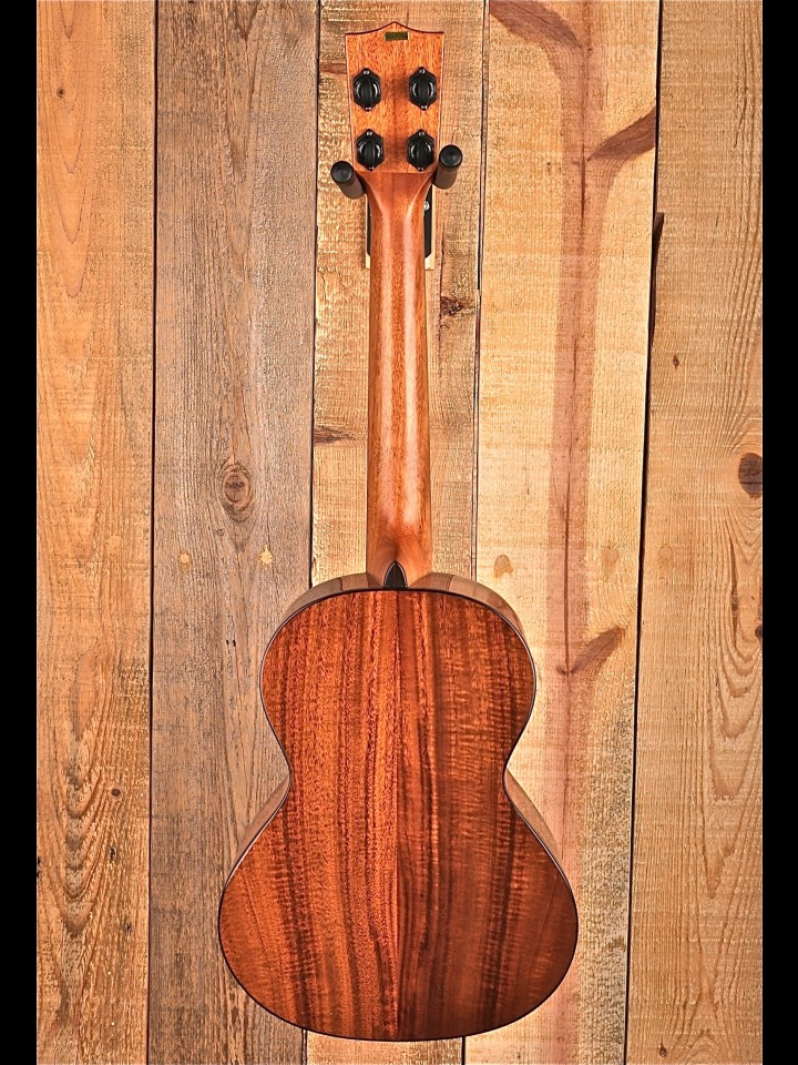 "Elegant and beautiful, these are some of the best sounding ukuleles you will ever play. To complement such an excellent sounding instruments, we gave it a full redesign for 2021. The Solid Cedar Top with Acacia back and sides in a shiny, gloss finish, trimmed out in Rosewood binding is a sleek combination. We added an Abalone rosette, Rosewood fingerboard and bridge, and Graphtech Ratio Black Tuners.