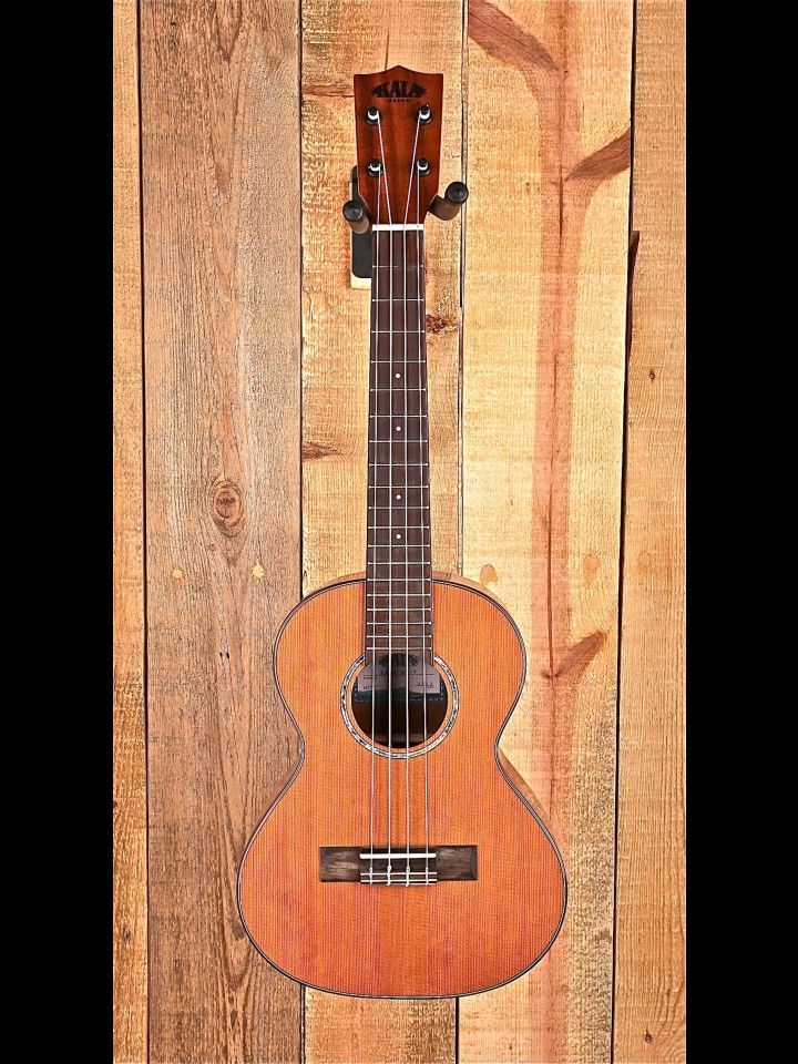 Cedar has a soft, lush tone that lends well to finger style playing. It has a natural, loud projection and is often recommended as the best ukulele for playing on stage. Available in Long Neck Soprano, Concert, Tenor, Tenor Cutaway with EQ, 6 String Tenor, 8 String Tenor, Baritone, and 8 String Baritone." – From the Kala Website